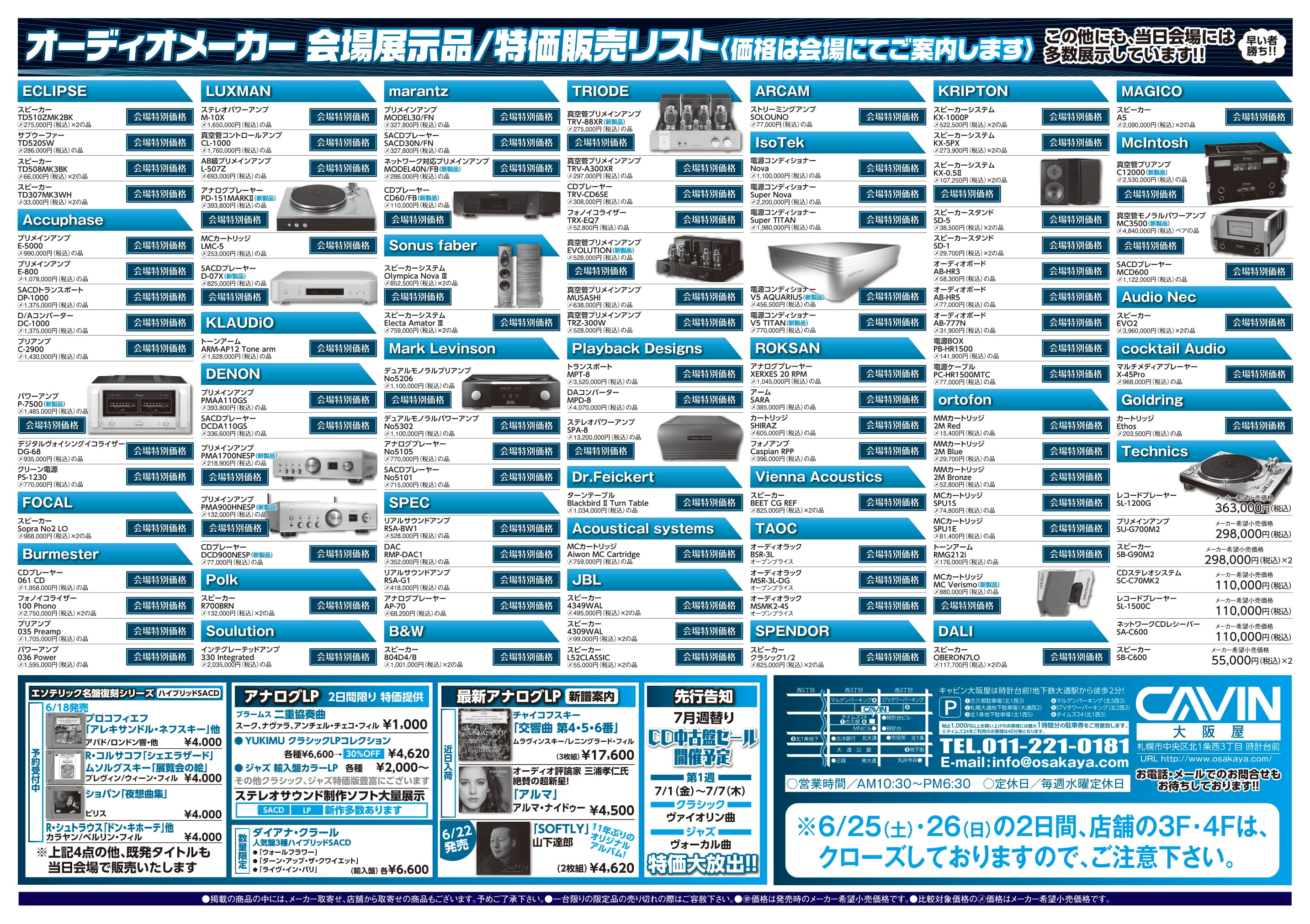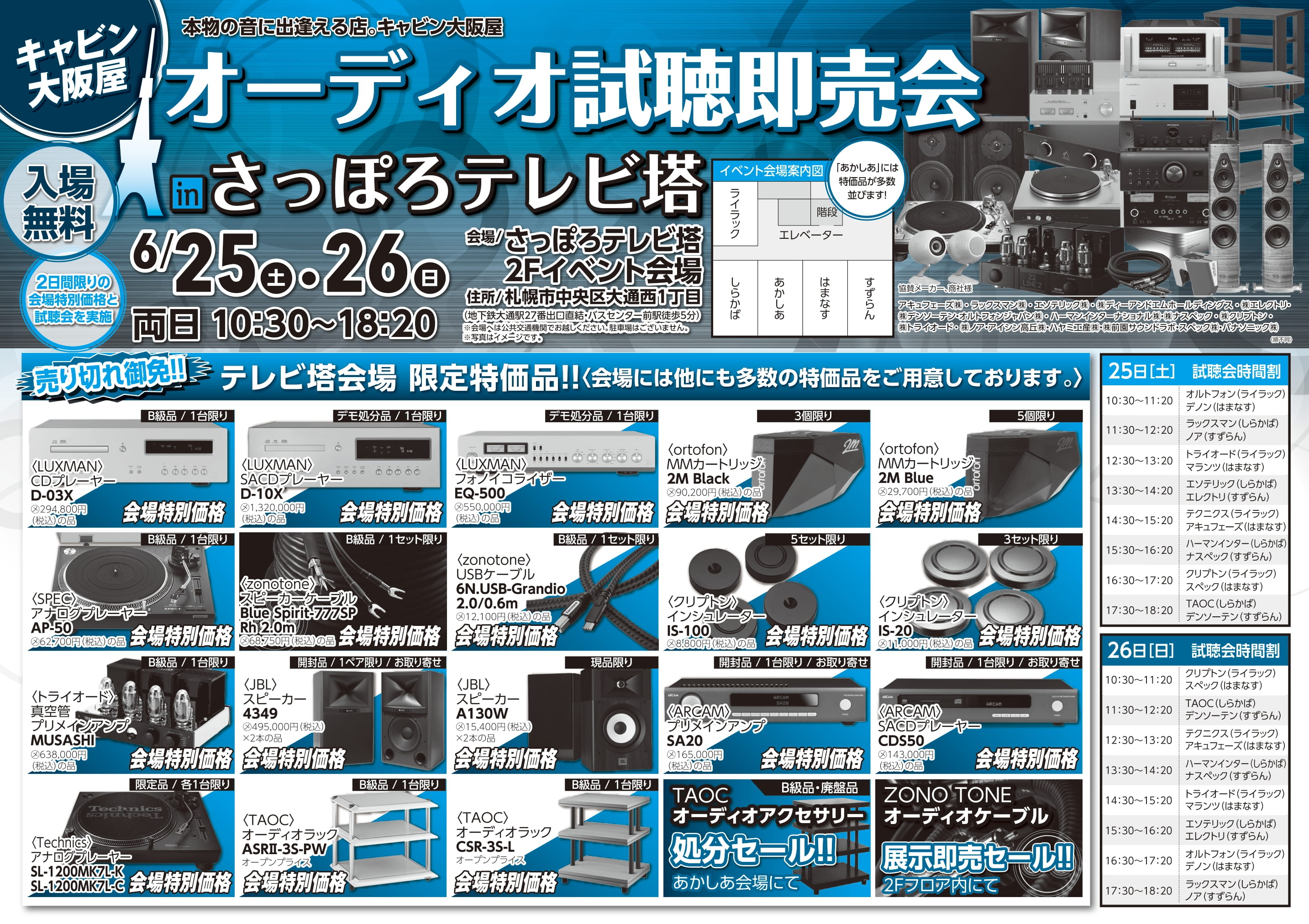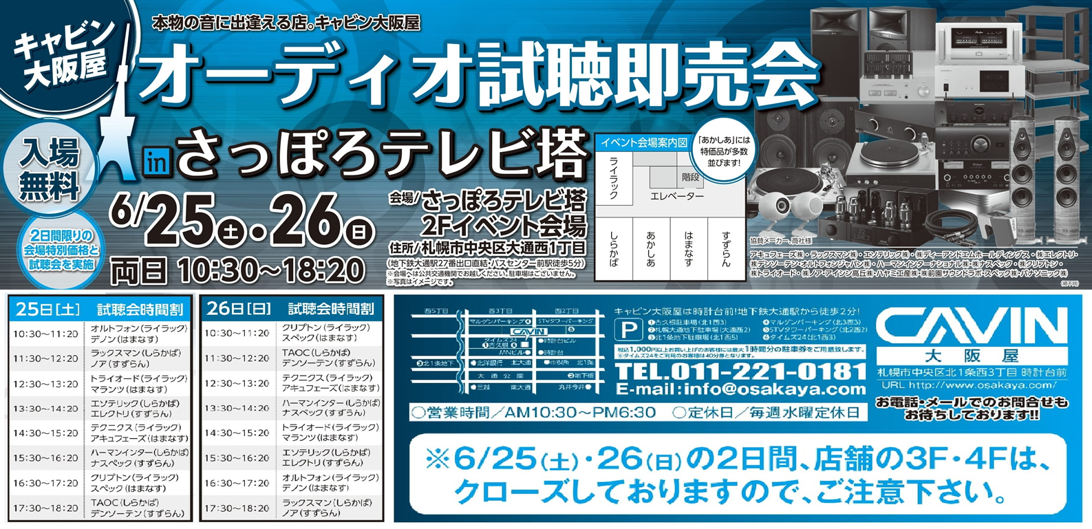 6月25日(土)、26日(日)の2日間は「オーディオ試聴即売会in さっぽろテレビ塔」を開催!!