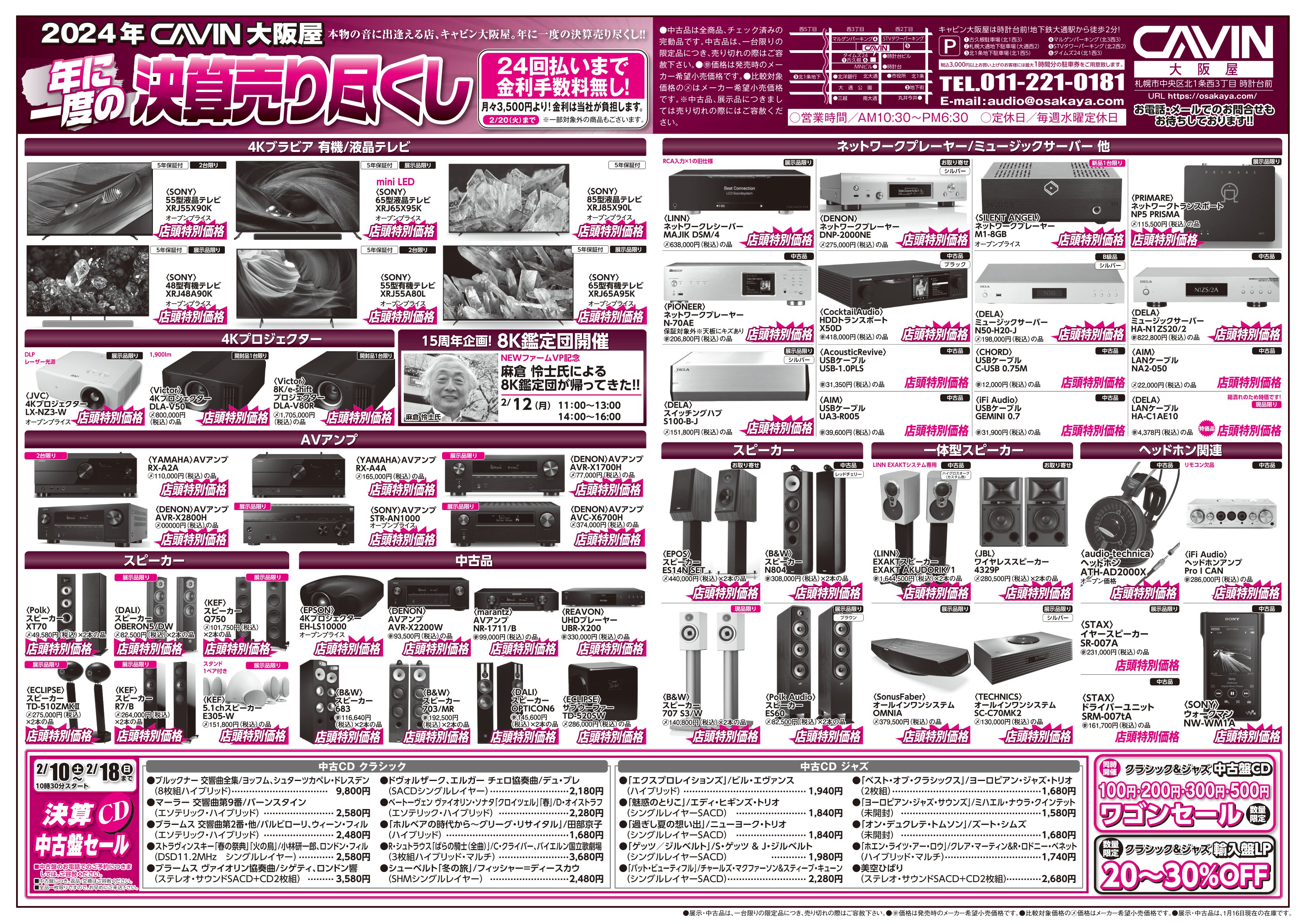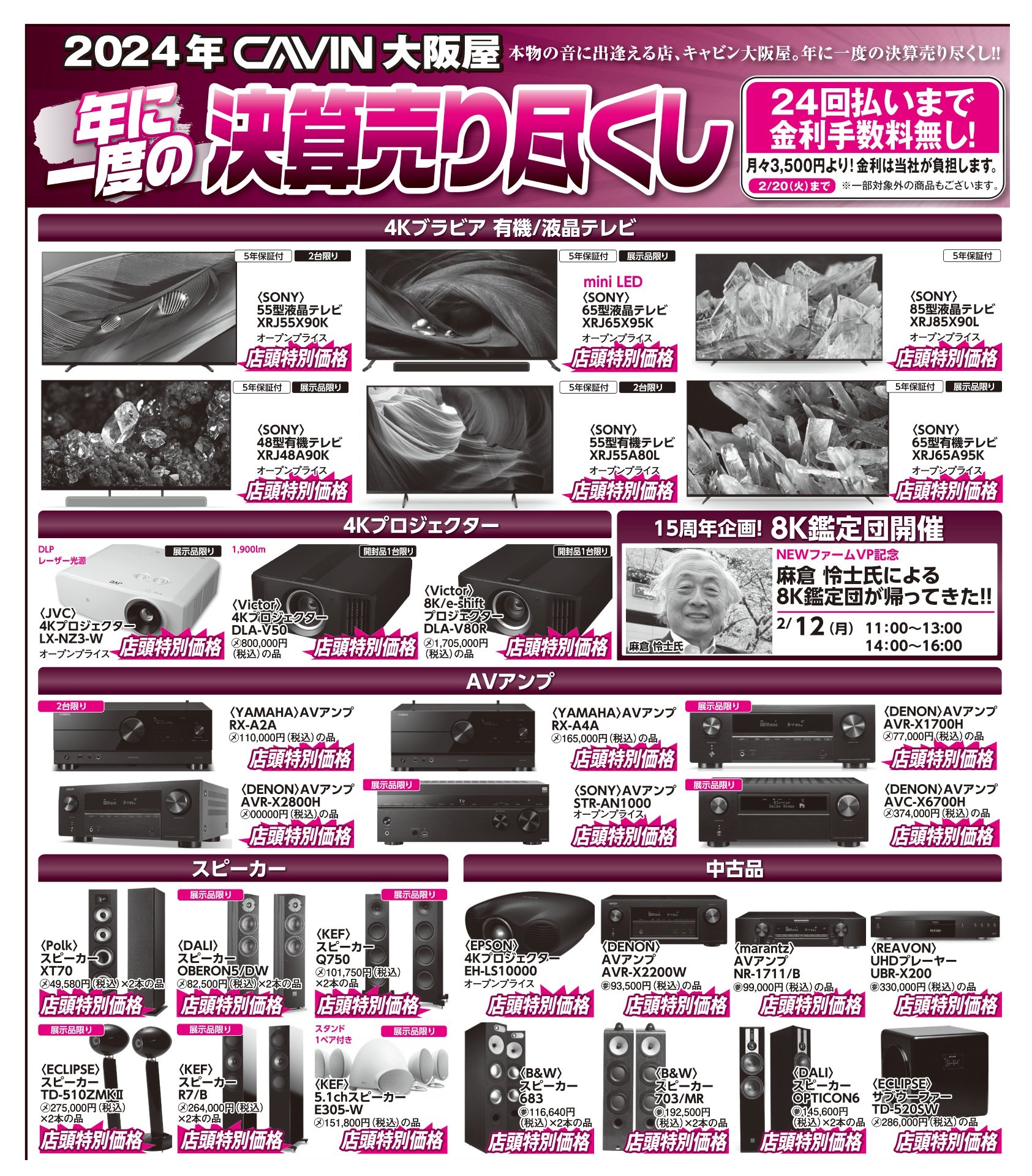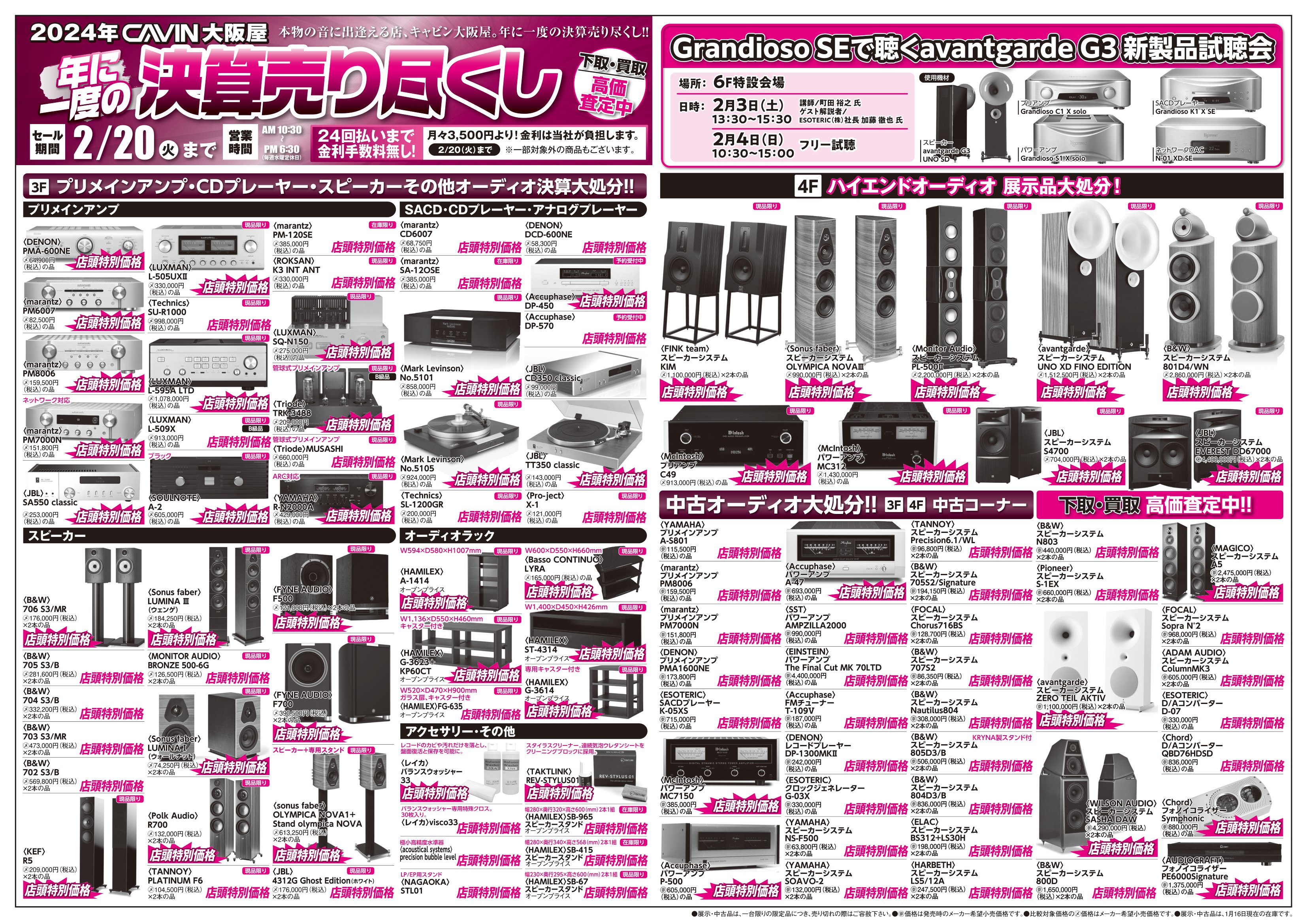 アンプ、CDプレーヤー、スピーカー、アナログプレーヤー、ネットワークプレーヤー等のオーディオ製品や、プロジェクター、AVアンプ等のホームシアター製品、その他、4Kテレビ、オーディオアクセサリー類を決算特価にてドド~ンと大放出!!!!