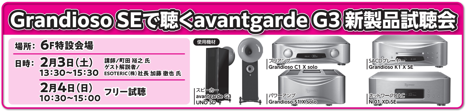 ドイツの高級オーディオブランドAvantgarde (アヴァンギャルド)の新スピーカー『G3 UNO SD』を、人気国内ブランド“ESOTERIC”(エソテリック)の最上位シリーズ『Grandioso』のシステムで試聴!!