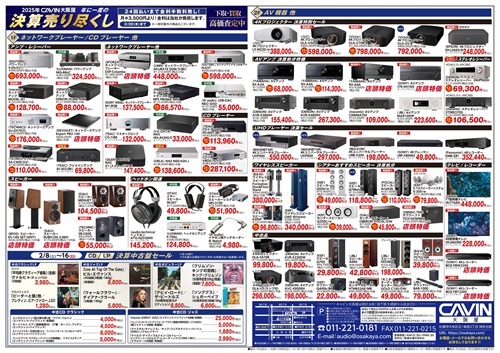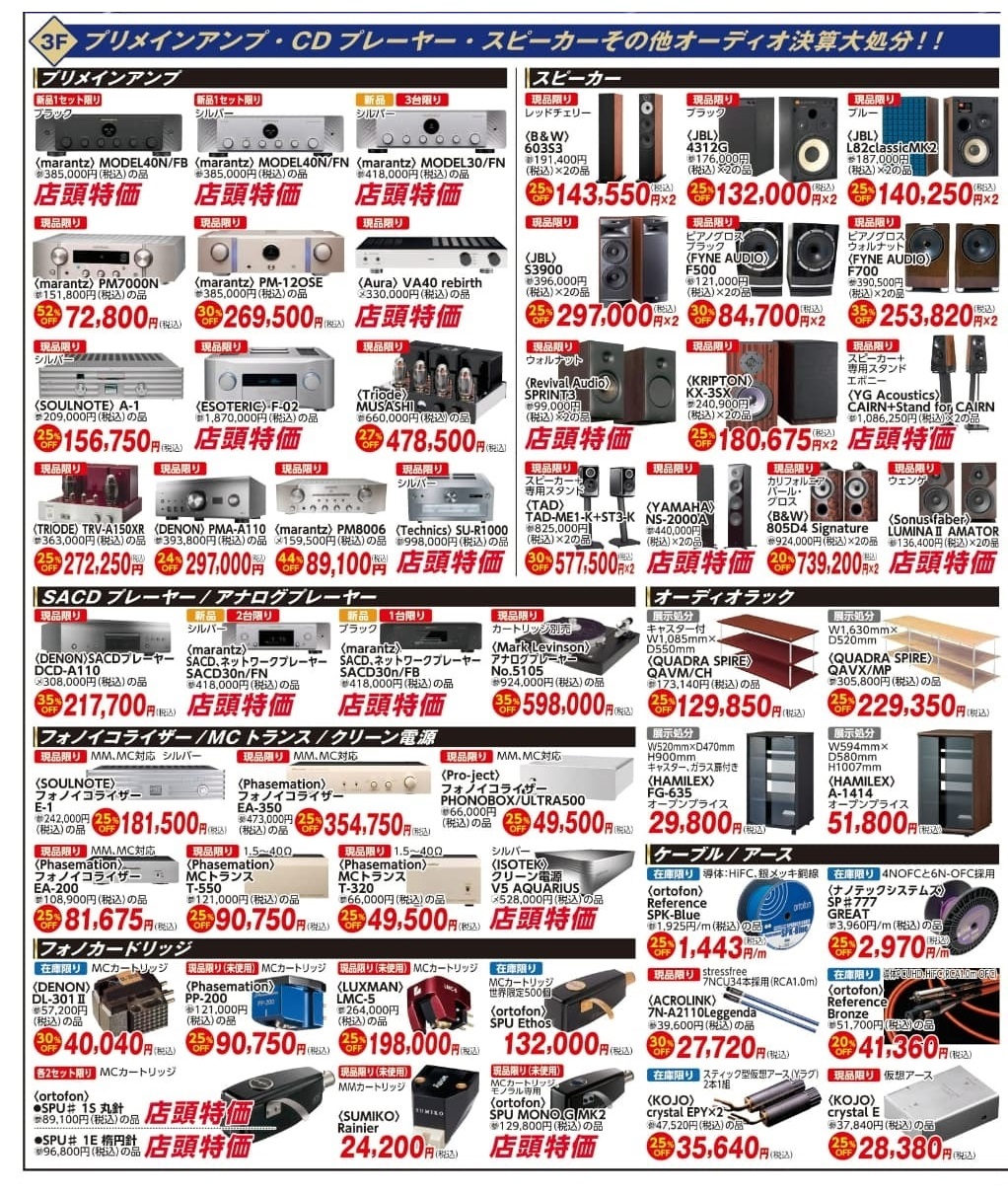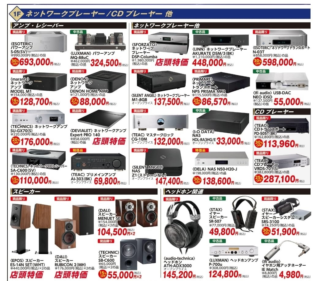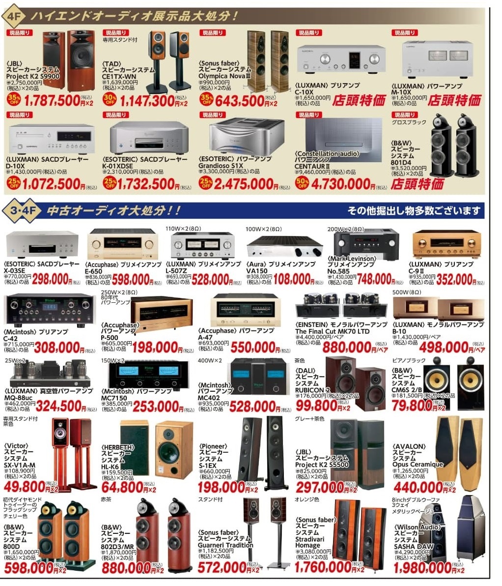 日頃のご愛顧に感謝を込めて、アンプ・CDプレーヤー・スピーカー・AVアンプ・プロジェクター・4Kテレビ・へッドホン・オーディオラック等をこのセールだけの特別価格にてご提供!!