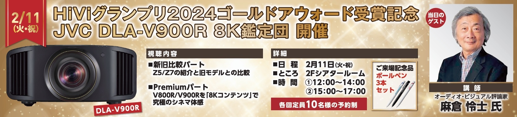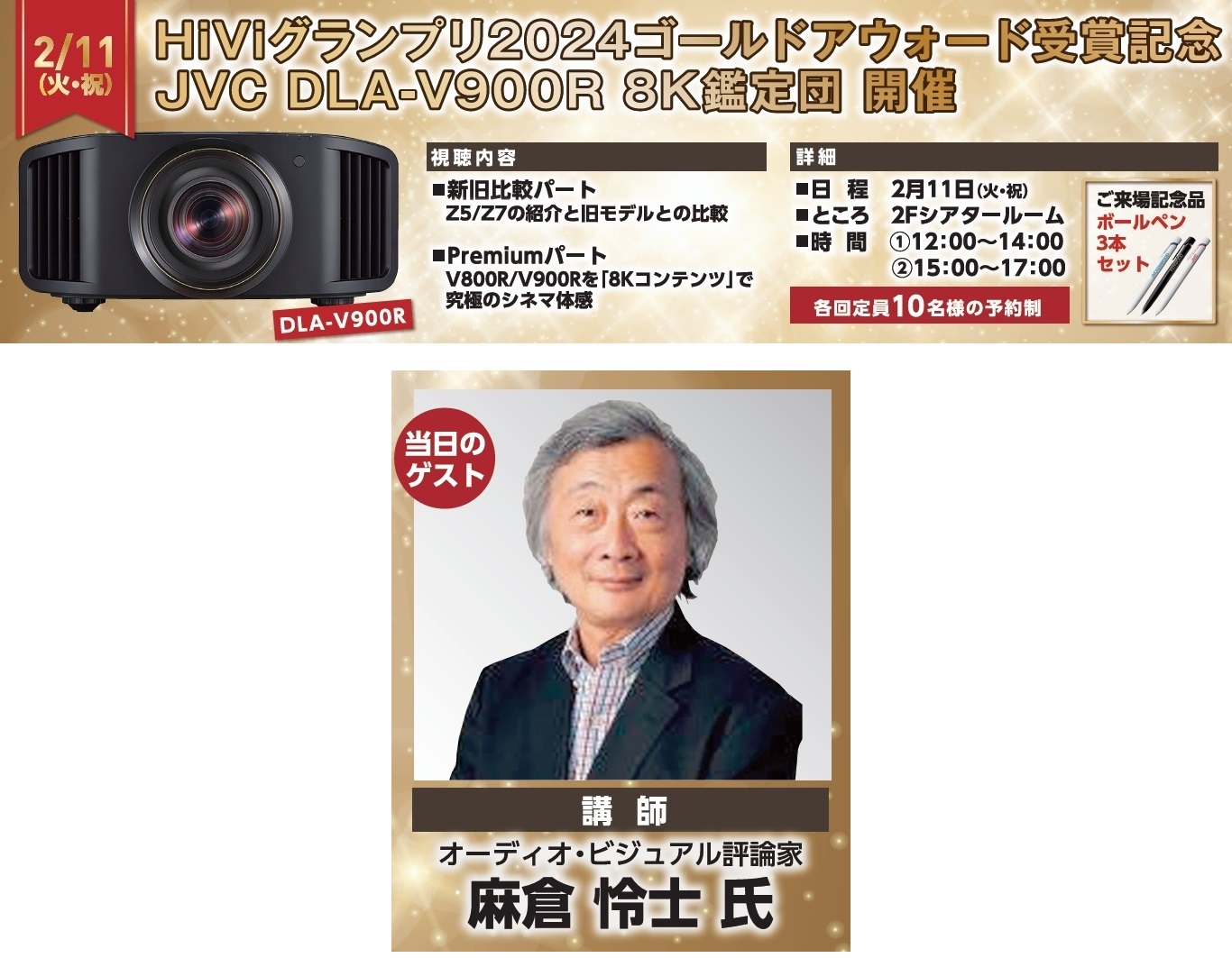 WEBや雑誌等でお馴染みのオーディオ・ビジュアル評論家 麻倉 怜士 氏 を講師としてお招きし、映画を鑑賞しながら各プロジェクターの解説をしていただきます。普段聞けない話が盛りだくさん!