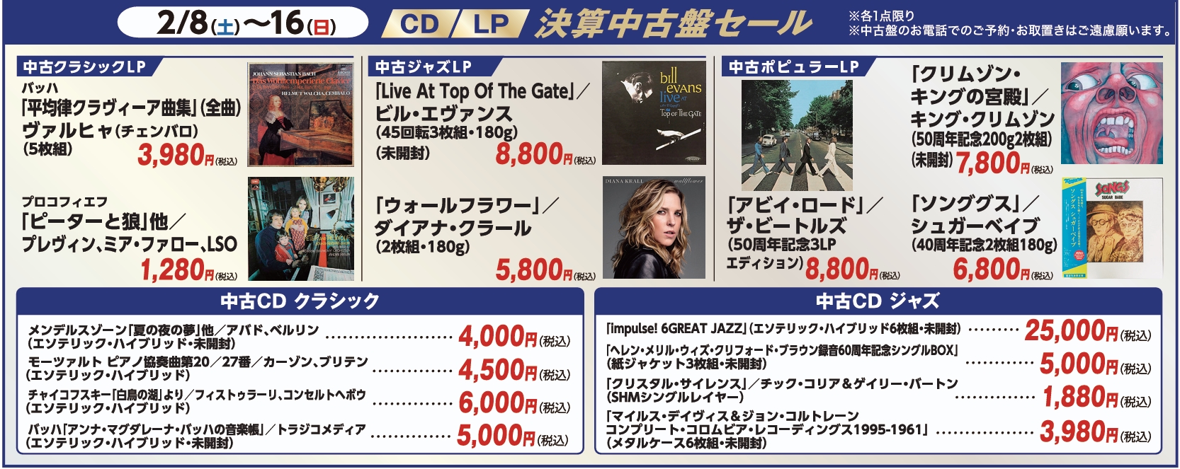 画像に記載されている商品はほんの一部です。他にもたくさんの名盤や、お買得品を揃えておりますので、ぜひご来店ください!