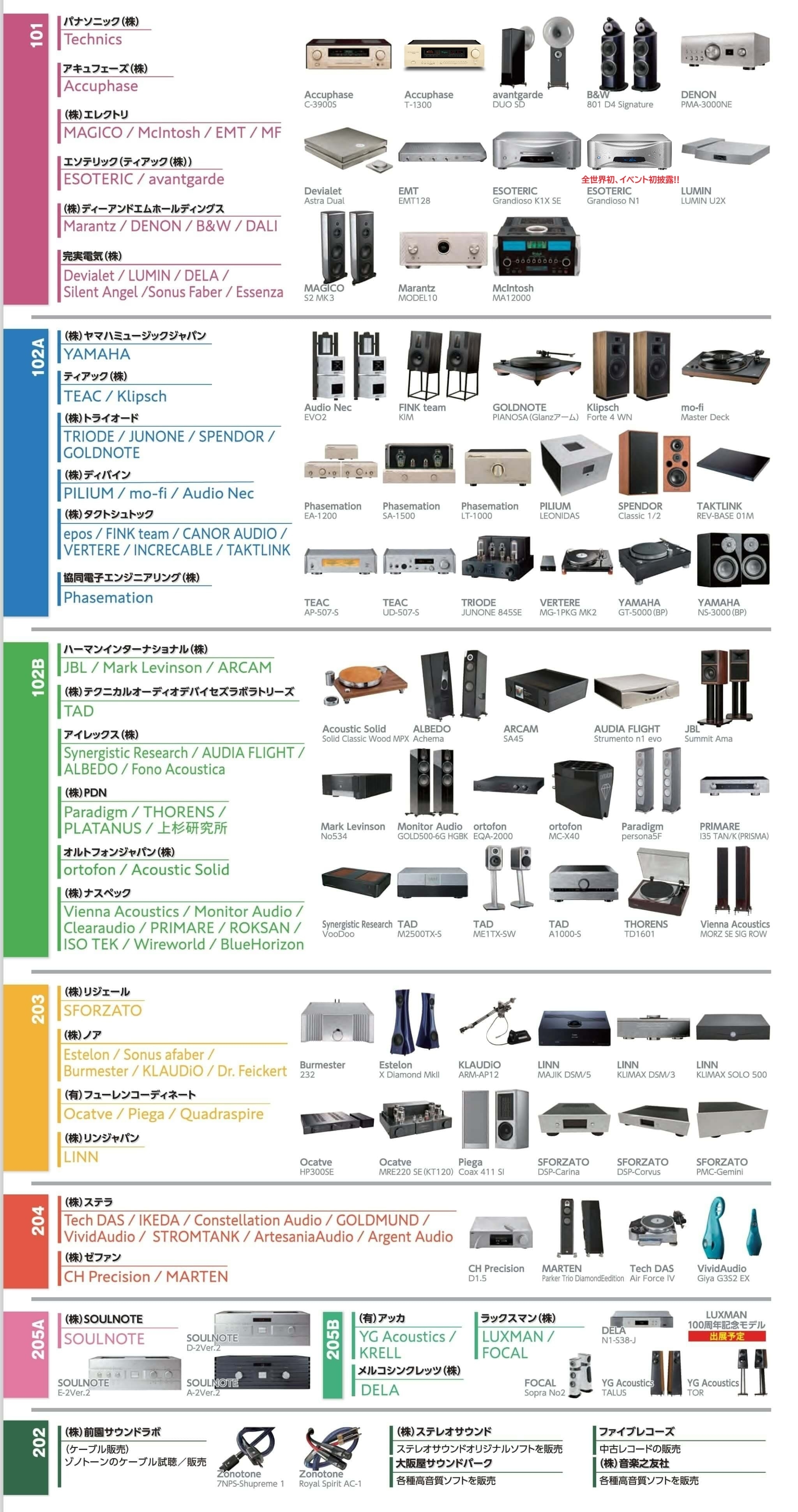 32社のオーディオメーカー・商社が参加し、各ブースにてアンプ・CDプレーヤー・スピーカー・オーディオアクセサリー等の展示・試聴会を実施。入場無料・入退場自由です。