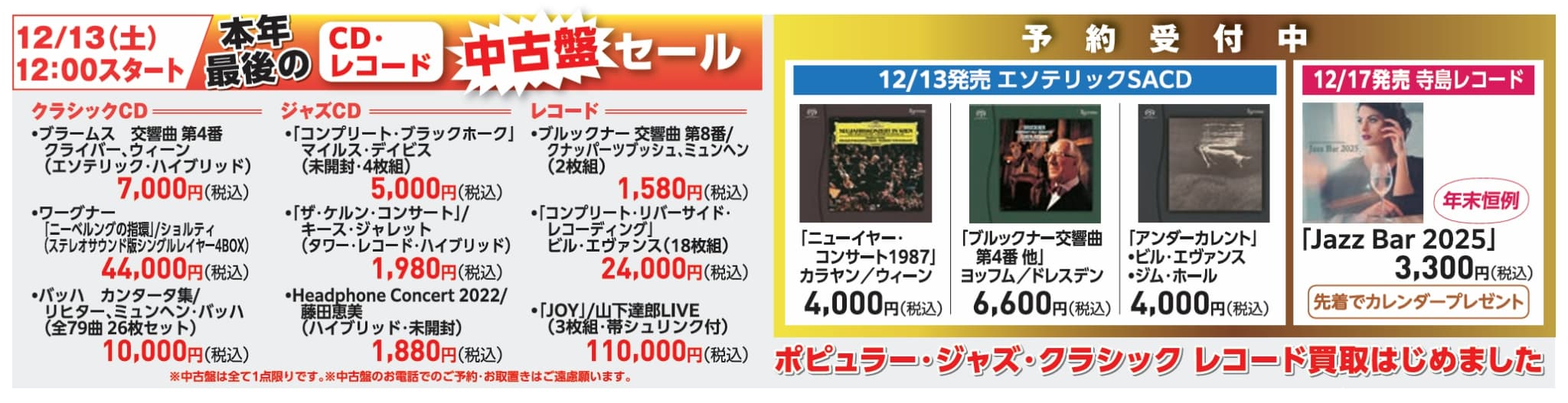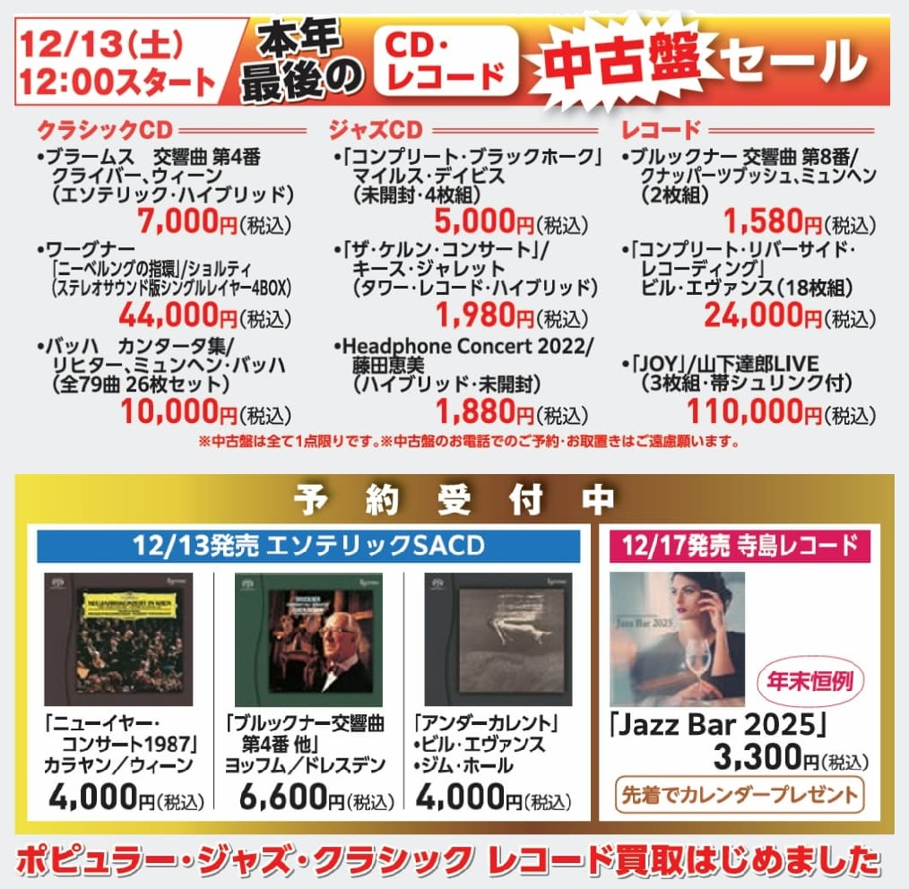 今年最後のCD・レコード中古盤セールも1階にて開催!!