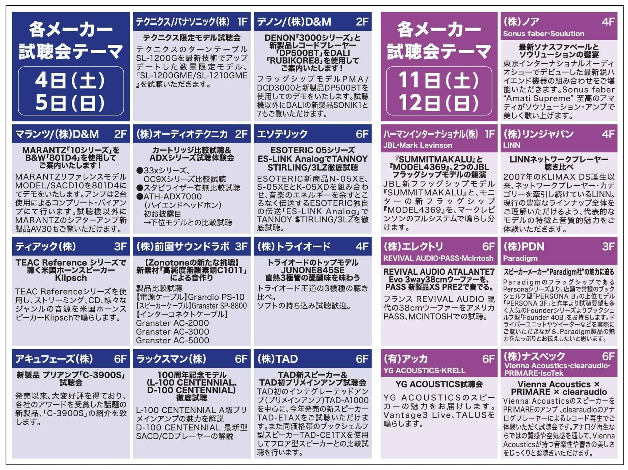 国内外のメーカー・商社が多数参加し、各ブースにてオーディオ機器の試聴会(予約不要)を実施!!