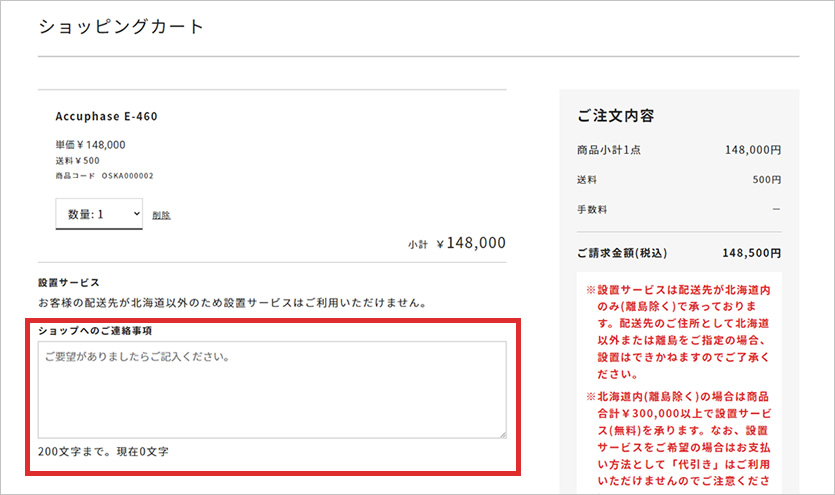 配送日、配送時間のご希望がある場合は、ショッピングカート画面の「ショップへのご連絡事項」にご入力ください。