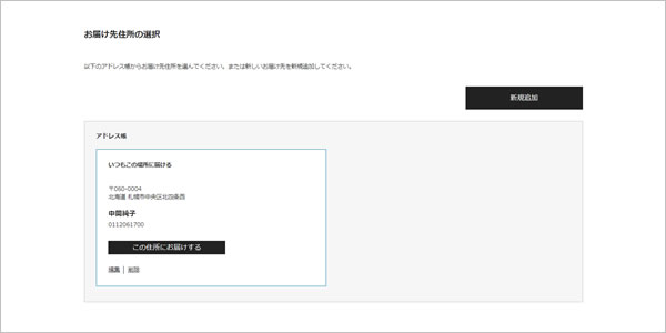 アドレス帳に登録されているお届け先からご希望のお届け先をお選びください。