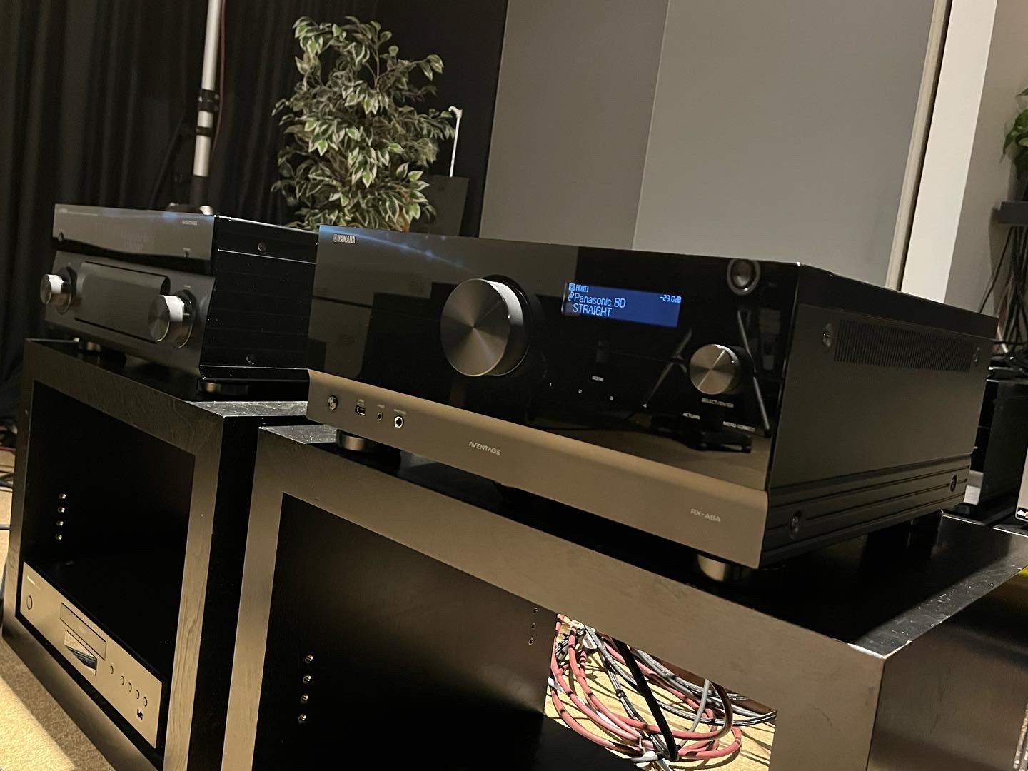主役のRX-A8A(以下A8A)は〝AVレシーバー〟ですが、今回は〝プリアンプ〟としても実力を発揮。同社のAVパワーアンプ「MX-A5200」と接続し、スピーカーはフラッグシップモデルの設計コンセプトを受け継いだブックシェルフ型「NS-3000」を6本使用しました。(4.1.2ch)