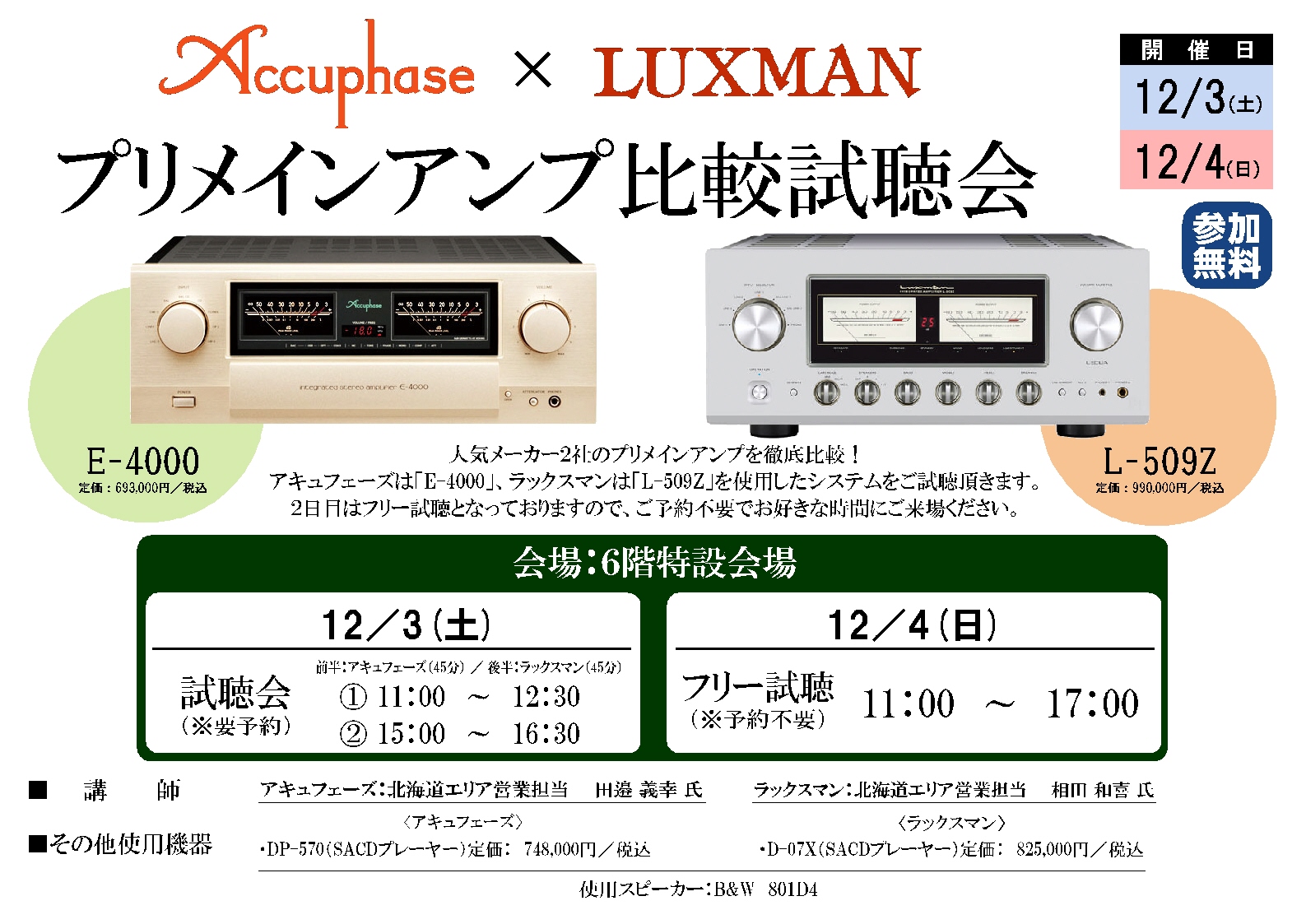 さて、次回のイベントは「アキュフェーズ&ラックスマン プリメインアンプ比較試聴会」です。