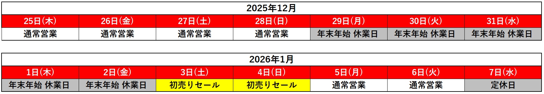新年は1月3日(土)・4日(日)に『初売りセール』開催!!