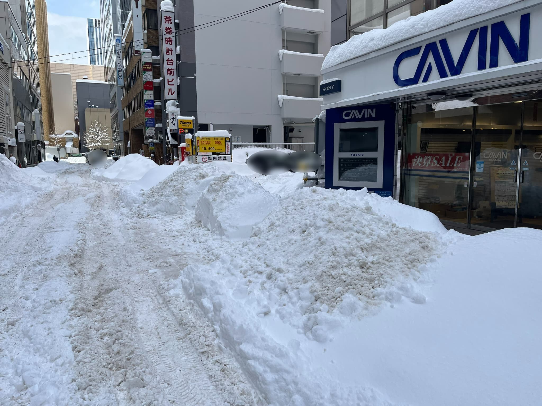 現在、店舗前の仲道の除排雪が間に合っておらず、一部の提携駐車場(古久根駐車場、タイムズ北1西3第2、STVタワーパーキング)のご利用が大変困難となっております。
