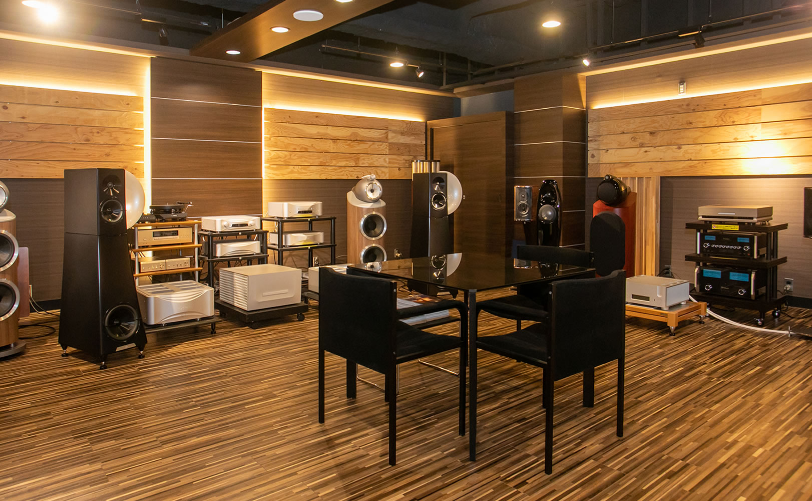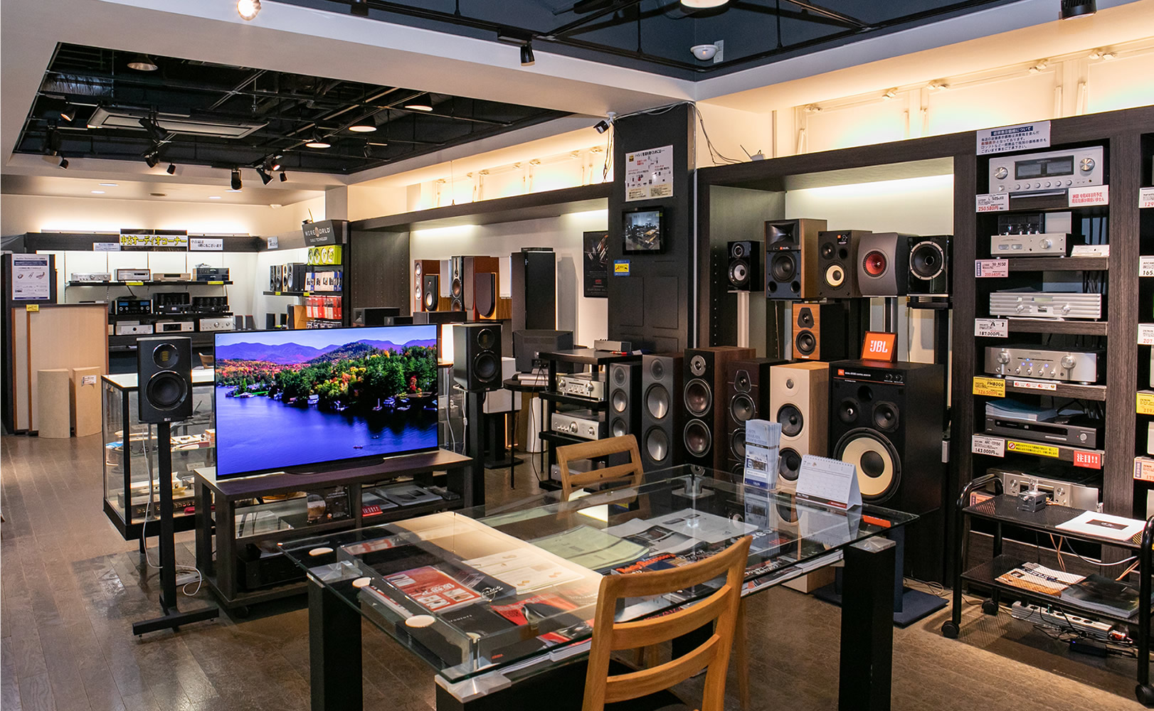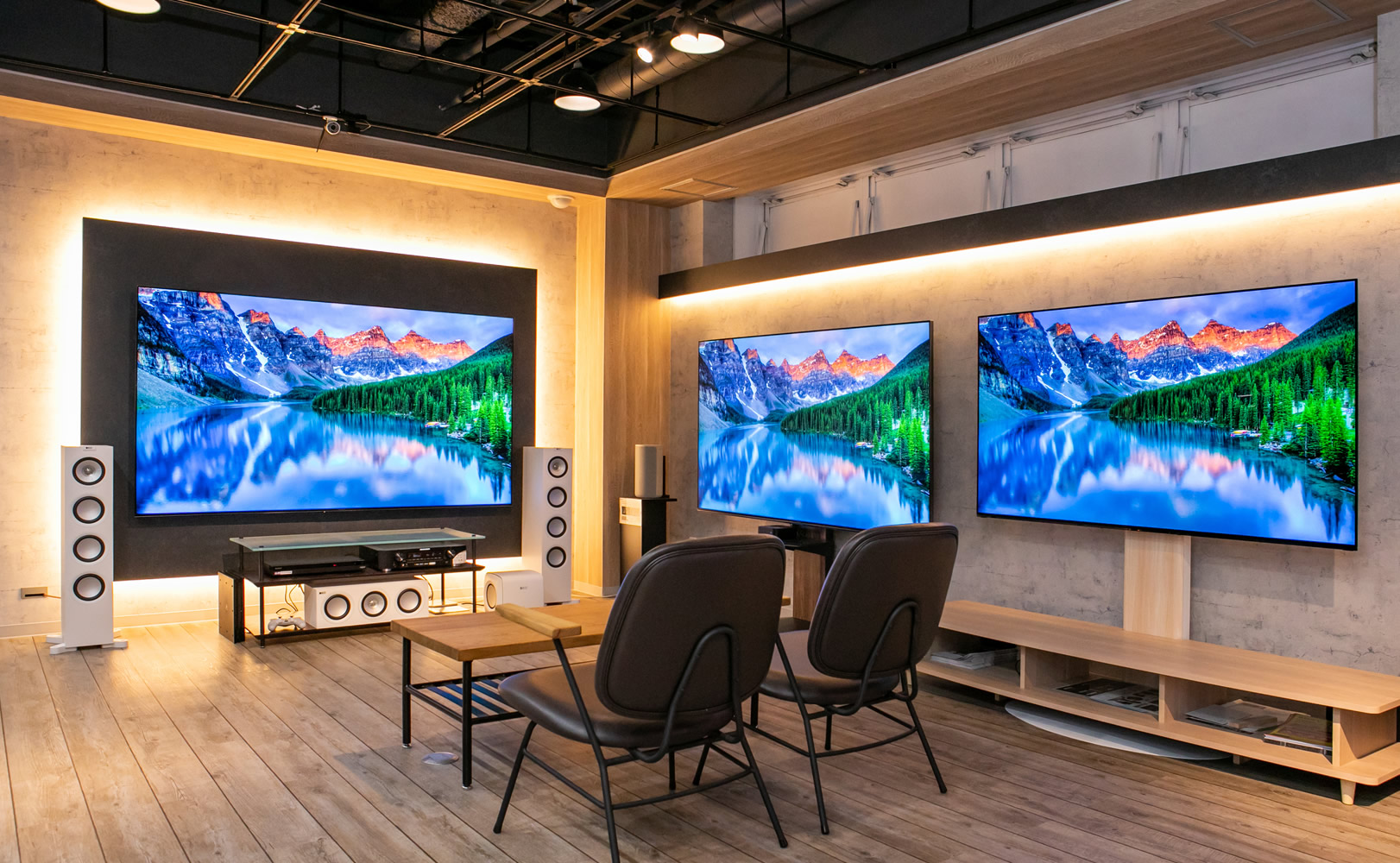 プロジェクターやAVアンプ/国内外のスピーカーで、マルチチャンネルシステムの臨場感を体験いただけます。迫力の150型(シネスコ)スクリーンを常設!!ソニー4Kテレビフルライン展示しています。