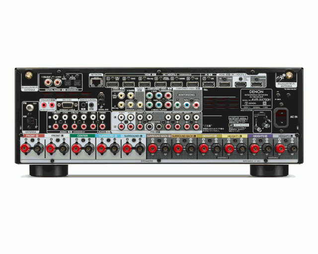 アナログ音声入力 × 5、PHONO入力 × 1、光デジタル入力 × 2、同軸デジタル入力 × 2、11.4chプリアウト × 1、ゾーンプリアウト × 1、ヘッドホン出力× 1(フロント)