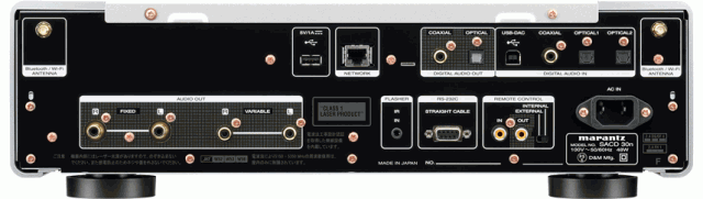 ネットワーク× 1、Bluetooth / Wi-Fiアンテナ入力×2、RS-232C× 1、フラッシャー入力×1、マランツリモートバス(RC-5)入出力 × 1
